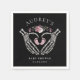 Fintliga, gotiska blommigtar med vattenfärg möts av en bra perfekt för napkins för en gotisk halloween-tema babydusch party. Våra söta, handgjorda konstruktioner kommer att tillföra lite stollig och elegans till din babydusch firande. Öka din aktivitet med dessa unika servetter som säkert imponerar på dina gäster! Vår design har våra handmålade vattenfärgade gotiska blommigtar och skelett händer som skapar en hjärtform med rosa flicka fotavtryck. Design fångar kärnan i ett sött mystiskt och charmerande gotskt tema. Ursprungligt handritat vattenfärgsgrafik och design av Moodthology Papery.