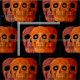Den här söta duken av mönster är perfekt för din Halloween-konstruktion. Den har en lustig orange, svart, gotsk, stil-skallhuvud. Roligt, skaka tre döskallars design med googly ögon. Trendig, unikt, läskigt, modernt. Upphovsrätt Marg Seregelyi Fotography.
