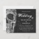 Vintagen för det gotiska skallhuvudet svart och vit Hallobröllopsbudget, platt kort. Roligt, spooky Halloween tills Dödsfall. Gör oss del-skript på struktur-utskriven bakgrund på baksidan. Upphovsrätt Marg Seregelyi Fotography.