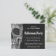 Vintagen för det gotiska skallhuvudet svart och vit Halloween-medtävlingsbudgetvykort. Roligt, skorpa och bennedkylning. Upphovsrätt Marg Seregelyi Fotography.