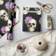 Halloween Gothic Glam Inspired Blommigt Skulluppsvällning Papper. Lägg till lite mörk till dina Halloween-presentationer. Utformningen har en snygg blommigt mönster på svart bakgrund. Skullet accentueras med ett vackert lila ro . Oavsett om du är värd för ett gottemat party eller helt enkelt tittar för ett unikt sätt att kapa dina Halloween-presenter, så är det perfekten som väljer vilket av våra pappra i form av en Gothic Glam-Blommigt som ska omslutas.