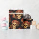 Den här pappra omslutningen av Halloween fest eller gothic bröllop har en mönster av läskiga döskallar som flyter i en svart avgrund bakom din monogramtext. Varje skalle är försedd med röd ros. Deras tomma sollösa öga står i skarp kontrast till de döda blommornas goda ro krona och buketter.