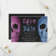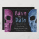 Gothic skalle Spara datumets rosa, blått, svart vintage stil Halloween-bröllopsinbjudan. Roligt, spooky Hallobröllop. Till Döden gör oss del-skript. Upphovsrätt Marg Seregelyi Fotography.