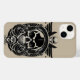 Detaljerad konstnärlig återgivning av en figur i ett getkrus med symmetrisk och komplicerad utformning och tema för mörk. Idealisk för tatueringsininspiration, bakgrunder eller gotisktematiska koncept och mode.