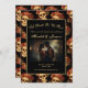 Det här gotiska bröllop spara datum har en mönster av äckliga döskallar som flyter i en svart avgrund bakom er text tills Döden gör oss delaktiga. Varje skalle är försedd med röd ros för ditt romantiska tillfälle. Lägg till förlovningens foto. Deras tomma sollösa ögon står i skarp kontrast till de döda blommornas goda ro krona och buketter. En konstig och morbid tvist på giftermål.