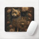 Guld steampunk gothisk katt, blommor och växlar digital AI-grafik.
