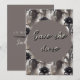 Ett klassiskt vattenfärg-mönster med svarta amaryllisblommor ger bakgrunden till denna slående design för att spara datum. Mörka toner av svart och grått, och en grunge-stil font bidrar till det mörka eteriska temat för denna alternativa brölloppsserie.