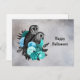 Gothic Teal Blommigt Uggla Halloween Helg Vykort