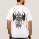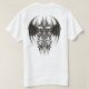 An intricate and symmetrical tribal crest featuring sharp, curved lines and weathered, metallic textures. The design is centered around a geometric totem and is flanked by large, stylized bat wings with a leather-like appearance. This bold, high-contrast emblem is set against a solid black background