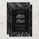 De här gotiska segrarna på svarta och vita bröllopsinbjudningar är perfekt för Halloween bröllop, med en ornat, gammaldags, snabbt ram, krackad med åldern, täckt i spooky cobwebs, mot en lätt texturerad, moody svart bakgrund. Texten är en kombination av ett grymt skript, klassiskt och lättläst blockbokstäver och stil av typen Gamla engelska, medeltida. Anpassa baksidan med din egen mottagnings- och OSA-information till spara om behovet av inkapslingskort eller ta bort fälten om du vill lämna baksidan tom.
