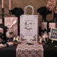 Gothic Victorian Rocking Horse Baby Shower Medium Gift Bag - Perfekt för en elegant gothic Baby dusch eller spooky plantskola i firande, den här unika designen visar en handdragen vintage-rockhäst med mjuka rosor. Scenen är försedd med en svart kråka, delikata spindelnät, en liten svart fladdermus och stjärnor, plus romantiska blommigtar i ro på en sofistikerad bakgrund av lilak lila. Perfekt för presenter på gotiemannade födelsedagar, Viktorianska babyduschar eller Halloween-inspirerad firande. All text är helt anpassade till kostym för din händelse. Tryckt på båda sidor.