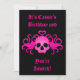 Bedårande inbjudningar i svart med en het rosa tandad bevingad skalle med ett hjärta på toppen tryckt på dem. Lägg till dina detaljer.