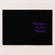Det här fantastiska foliekortet har en digital konstbild av en kuslig men vacker Halloween-vampyrinna. Den kvinnliga vampyren har långt spetsigt svart hår och bär en röd klänning prydd med en spindel och dekorerad med svarta dödskallar, stjärnor, diamanter och ett par svarta svanar. Hon har röda läppar täckta med läppstift och ett sensuellt leende och långa vita hörntänder. Hon har också svarta naglar, en blodröd armband av rubiner och svarta stövlar med höga klackar med guldbågar på. Hennes armar är öppna och välkomnar dig till en ond hugad omfamning. Det finns anpassad text på framsidan och insidan som gör det här kortet helt anpassningsbart.