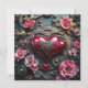 Personlig vacker gothisk steampunk-fotomall Alla hjärtans dag-kort. Vacker svart, het rosa, koppar och guldfärgade kugghjul och rosor. Baksidan har tre utrymmen för bilder i form av ett hjärta. Du kan också redigera texten i personaliseringsområdet.