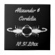 Denna fantastiska bröllopsplatta har en digital konstbild av ett par vackra vita skorpioner som är vända mot varandra. Varje skorpion är vit och har åtta ben, en giftig sting och ett par kloppar. Klopparna hålls samman för att bilda formen av ett hjärta. Bakgrunden är svart. En vacker gothisk bröllopsdesign. Det finns anpassad text så att du kan inkludera namnen på det lyckliga paret och bröllopsdatum.