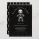 Rolig gothisk julfirande kakorbyte inbjudan med skelett Gingerbread man och talesättet Bakande andar ljusa. Det finns en touch av svart glitter på toppen och botten också! Lägg till din kakorbyte festinformation till inbjudan. Skelett mönster på baksidan (eller ta bort för enfärgat svart. Se samordnade artiklar i vår butik, Enchanted Finch.