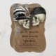 Den här bröllopsinbjudningen är en modig och oförglömlig påstående för ett par som dras till den mystiska och makabra. I centrum finns förfärande vackra illustrationer av bruden och groomen som figurer med skelett, som skildras i Victorian mode. Brödets skalle kröns med en blommigt och fjäder med en enda ro, medan brudgummen bär en lång broderande top hat. Bakgrunden till inbjudan är en gyllene brun vindruta med svarta och ljusare vener som är spridda genom hela ytan. Inbjudan anger perfekt tonen för ett mörkt romantiskt, vintage-inspirerat bröllop - ett som firar kärlek i evighet med en gigantisk, glamorös twist. Perfekt för fall och Halloween bröllop eller ett par med en smak för gotik, teatralisk och oväntad.