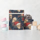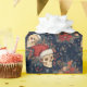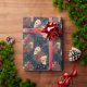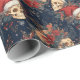 En festlig gothisk jultomtedesign med döskallar i tomten med traditionell blommigt juldekorationer på himmel-bakgrunden i mörken natten.