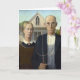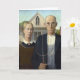 Denna är anslags- träs berömda målning "den gotiska amerikanen," målat i 1930. Ett bondeinnehav som en högaffel står bredvid hans ogift kvinnadotter. Anslags- träs syster, Nan som modelleras för dottern och deras tandläkare, är modellera för bonden!