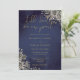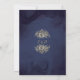 Denna eleganta gotiska bröllopsinbjudan kan personanpassas med din information i chic guldtypografi med dina monograminitialer på baksidan på en midnattsblå bakgrund. Designad av Thisisnotme©