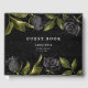 Gotiskt bröllopsdusch-gästbok med blommotiv med illustration av svarta rosor.