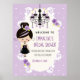 Lila, lavendel och svarta gotiska bröllopsdusch-inbjudningar är perfekta för en Halloween-inspirerad bröllopsdusch eller möhippa. Dina gäster kommer att vara förtjusta över att se denna söta gotiskt tema-inspirerade välkomstskylt med en elegant svart och lila ljuskrona och en söt gotisk flicka med svart läppstift och lavendel ögonskugga som bär en ametist förlovningsring i en gotisk bröllopsklänning med en lila korsett överdel. Hon håller ett glas bubbelvin som gör det till en perfekt "brunch och bubbel" tematiskt dusch också. Rosor och krullrankor lägger en söt och gotisk touch till konstverket. Ett blomstermönster upprepas på baksidan. Konstverk © Chrissy H