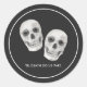 Den här gotiska dödskafshuvudbröllopsdekalen ger en djärv och stilren touch till dina bröllopsdetaljer. Med en slående dödskafshuvuddesign och en mörk, dyster estetik är den perfekt för gotiska, Halloween- och alternativa bröllop. Idealisk för att försluta kuvert, dekorera presenter eller lägga till en unik accent till din bröllopsdekoration. Helt anpassningsbar för att matcha ditt evenemang och koordinera med den gotiska dödskafshuvudbröllopssamlingen.