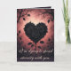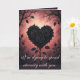 En osannolik blomning: en hjärtformad klunga av tätt hoprullade svarta rosor, vars kronblad är så tätt packade att sömmarna mellan de enskilda blommorna suddas ut till en enda skulpterad form. Koltronsnyanser gör att hela hjärtat känns både tungt och känsligt på en gång. Scenen ramas in av spinkiga grenar och knoppar som inte slagit ut, några med små taggar på spetsen. Bakgrunden är en varm, lysande tvätt av rosa och dunkla rosa nyanser som bleknar mot mörkare kanter. Bilden balanserar motsatser: ljus och mörker, romantisk symbolism och en touch av melankoli.