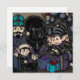 Vacker handritad och färgad Newfoundland valp i en mörk gotisk färgpalett, komplett med julhelgens tomtar, presenter och en nötknäppare!