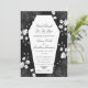 En mörk "Tills döden skiljer oss åt" inbjudan, detta är en elegant kistliknande bröllopsinbjudan på svart bakgrund med svarta rosor och vita blommor. Dessa är perfekta för bröllop under alla årstider: vår, sommar, höst eller vinter.