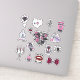 I paketet Gothic Halloween Stickers ingår teckningar: Rib Cage Ro, Fladdermöss, Fladdermus Balloon, Bow Tie, Candle Holder, Coffee Kopp, Dagger, Do not Disturb, Goth Heart Spindelnät, Goth Lipstick Nagel polska, Hourglass, I Suck at Life, Nyckel Bow Tie.