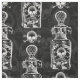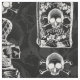 En collage av inklusive döskallar för vintage bild, blommor och en utsmyckad parfymflaska bildar detta nätt gotiska svartvita giftflaskamönster.