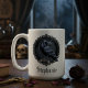 Sätt tonen för en dyster morgonritual med denna personliga keramiska kaffekopp. Denna slående design har en detaljerad svart korp placerad inom en utsmyckad viktoriansk ram, renderad i en sofistikerad kol och bläckpalett. Det är det perfekta sättet att fira en speciell tillställning eller en genomtänkt gåva till en litteratur- och naturentusiast.
