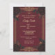 Fira bruden med denna gotiska bröllopsinbjudan. Med en djup burgunderbakgrund, svarta och mörkröda rosor och utsirade gyllene viktorianska ramar förenar den mörk elegans med romantisk charm. Perfekt för en dyster, fantasifull gotisk bröllopsfest eller en viktoriansk inspirerad fest