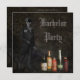 Coola, eleganta och roliga gotiska sällskapsfest-/möhippefirande inbjudningar med en fantastisk hemsk brudgumsskelett iklädd en formell svart cylinderhatt och svit/topphatt och frack med en stilren käpp som pekar på champagne- och whiskyalkoholflaskor bredvid honom som heter Zombie Virus, Liquid Phantom, Råttgift, Balsameringsvätska och Ye Olde Spindelgift. Bakgrunden är en mörk shabby chic grunge collage av stilfulla svängar och utsmyckningar. Klassiska, trendiga roliga inbjudningar för goth eller till Halloween. All text kan lätt anpassas för att passa dina behov och du kan ändra typsnitt, färg och storlek om du önskar. Om du behöver hjälp med att anpassa din produkt, vänligen kontakta mig via