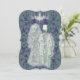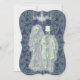 Ljusande kuslig och förtjusande skelett Halloween-brud och -brudgummepar. Har vintageinspirerad design med ljuskrona och utsirad bakgrundsdesign. Paret går hand i hand. Denna Halloween-inbjudan passar bra för kostymbaler, cocktails, Halloween-fest och Halloween-bröllop. Har tealblått, vitt, svart och lila.