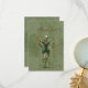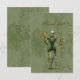 En gotisk design med en grönklädd skelett på en grungegrön bakgrund.