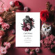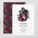 Fira med gotisk elegans med denna unika inbjudan till pars bröllopsfest med vackra ugglor omgivna av mörka burgunder- och rosa rosor och grönska. Perfekt för Halloween-fester, gotiskt tema eller naturinspirerade firanden, denna inbjudan sätter en mystisk men romantisk ton. Anpassa med namn, datum, plats och gåvoregisterdetaljer för ett unikt evenemang.