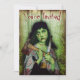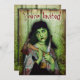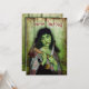 Den döda zombie-flickan på denna läskiga Halloween-inbjudan har en underbar grön hud, öppna blodiga sår och helt vita ögonbollar. Hon är klädd som zigenerska i slitna, fläckiga kläder och ser mycket romantisk och dramatisk ut när hon vandrar genom den dimmiga skogen. Runt armen har hon en påse med ett ben som sticker ut, och poetiskt inklämd i hennes händer är en yxa och en kniv. Hon ser lite ut som den moderna Mona Lisa bland zombier, med ett litet leende på de gröna läpparna. Oavsett om du har en gotisk, skräckinjagande Halloween-fest eller ett zombie-temat kostymevenemang, kommer dessa kusliga, mycket unika inbjudningar att fånga dina gästers uppmärksamhet. Lägg till alla dina in