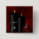 Gotisk julillustration som presenterar svartstearinljus med silverskalledekoration och en röd julbauble med svart döskallar på en grungeröd-svart bakgrund med snöflingor.