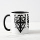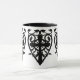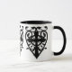 En söt järn rulla arbetar kor i ett romantiskt hjärta som hämtats från mitt foto av en gammal Victoriansk krypdörr i en kyrkogård. Detta ger en svart elegant på mugg med svart trim.