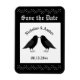 Denna fantastiska Spara datum Bröllopsmagnet har en digital konstbild av ett par vackra svarta korpar som är vända mot varandra och ser ut som om de kysser varandra. De är svarta med små ögon och grå näbbar och fötter.