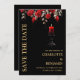 Fånga den mörka romantiken i en gotisk bröllopsfest med vår kusligt vackra gotiska bröllopsdesign för "Save the Date". Mot en bakgrund av midnattssvart fladdrar ett slående rött ljus hotfullt och kastar ett kusligt sken över en säng av blodröda rosor. Denna fängslande bild förkroppsligar essensen av gotisk charm och erbjuder en perfekt inledning till ett bröllop som är genomsyrat av mystik och förtrollning.
