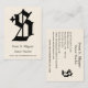 Visitkort med antikvariskt gotiskt brev S i en reproduktion av en äkta medeltida/renaissancestilsort.