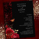 Gotiskt rött och svart blommigt bröllopsprogram. Falska blad av guld folie. Skriftstil framhäver med lättläst namn-teckensnitt. Lätt att anpassa för dina egna bröllopsbehov.