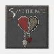 En gotisk Spara datumillustration: Gotiska smyckeshjärta i rött och svart med silver-skalle på mörkens grått-bakgrund.