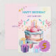 Ett vackert rosa-inspirerat födelsedags-kort som visar massor av goda godsaker. Gör en liten flicka mycket glad på hennes speciella födelsedag med detta söta kort.