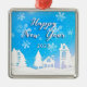 Gott nytt år 2023 Blue White House Snö Julgransprydnad Metall