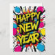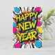 Gott nytt år 2025 Färgglad sprängande Pop Art Julkort