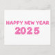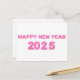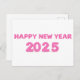 Gott nytt år 2025-kort, med genomskinlig bakgrund. Snyggtens typsnitt finns i attraktiv rosa färg med balon som 3d-design.
